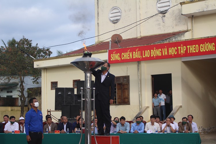 Đồng chí Nguyễn Ngọc Tênh – UVBTV, Chỉ huy trưởng Ban chỉ huy quân sự huyện phát biểu tại buổi Lễ