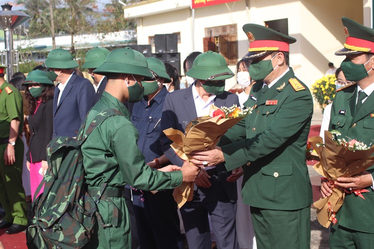 Lãnh đạo Huyện tặng hoa và quà cho các Tân binh chuẩn bị lên đường nhập ngũ