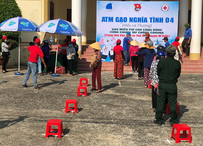 Trước tình hình dịch bệnh Covid-19 trên thế giới và trong nước đang diễn biến phức tạp, khó lường; ảnh hưởng nghiêm trọng đến sản xuất, kinh doanh và đời sống của nhiều doanh nghiệp, tổ chức, cá nhân trong nước, đặc biệt là người dân không có công việc ổn định, người nghèo, các đối tượng chính sách, bão trợ xã hội...Nhằm hỗ trợ gạo cho người dân có hoàn cảnh khó khăn trên địa bàn huyện; Ban Thường vụ Huyện đoàn M’Drắk - Hội liên hiệp Thanh niên Việt Nam huyện đã phối hợp với Ban Thường vụ Tỉnh đoàn - Hội liên hiệp Thanh niên Việt Nam tỉnh Đắk Lắk, cơ quan, đơn vị, các mạnh thường quân, nhà hảo tâm lắp đặt “ATM gạo nghĩa tình số 04” của tỉnh tại huyện M’Drắk. Trong ngày đầu tiên cấp phát (20/4/2020), “ATM gạo nghĩa tình số 04” đã cấp phát gần 1,1 tấn gạo; bên cạnh đó, Huyện đoàn M’Drắk cũng đã phối hợp với Hội Chữ thập đỏ huyện vận động được thêm 5kg rau xanh, 100 gói mỳ tôm, 500 quả trứng gà để cấp phát cho người dân. Theo dự kiến, thời gian hoạt động của “ATM gạo nghĩa tình số 04” sẽ được triển khai đến ngày 30/4/2020; ngày 21/4/2020, “ATM gạo nghĩa tình số 04” sẽ tiếp tục cấp phát gạo miễn phí cho người dân trên địa bàn xã CưM’ta.