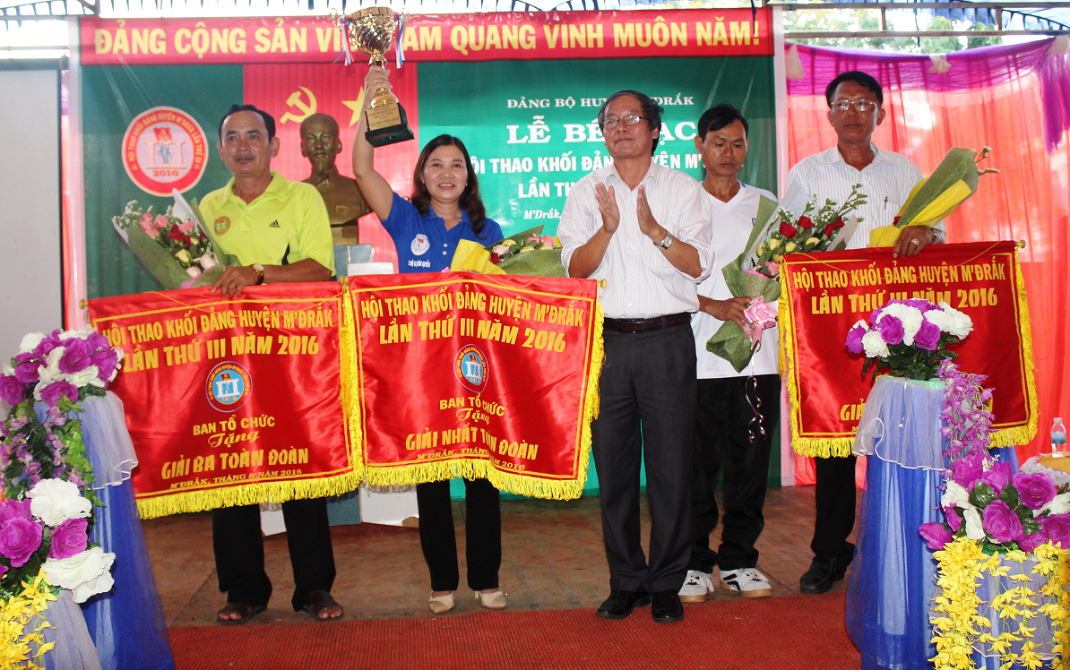 Chiều ngày 01/9/2016, Huyện ủy M’Drắk đã tổ chức bế mạc Hội thao khối Đảng huyện lần thứ III, năm 2016. Đến dự có đồng chí Đinh Khắc Tuấn - Tỉnh ủy viên, Bí thư Huyện ủy; đồng chí Vư Hữu Nhân - Phó Bí thư Thường trực Huyện ủy, Trưởng Ban tổ chức Hội thao; đồng chí Lê Đình Điền - Phó Bí thư Huyện ủy, Phó Ban tổ chức Hội thao; Thường trực HĐND, UBND và UBMTTQVN huyện; đại diện các TCCS Đảng trực thuộc Huyện ủy; lãnh đạo các cơ quan, ban ngành đoàn thể của huyện; cấp ủy, chính quyền địa phương 13 xã và thị trấn trên địa bàn huyện.Đ/c Lê Đình Điền - Phó Bí thư Huyện ủy, Phó Ban tổ chức Hội thao khối Đảng huyện M’Drắk, lần thứ III, năm 2016 đã thông qua báo cáo đánh giá tổng kết Hội thao và công bố Quyết định tặng Cúp, cờ và Huy chương cho các tập thể và cá nhân có thành tích xuất sắc tại Hội thao. Cũng tại Lễ bế mạc Đồng chí Vũ Hữu Nhân - Phó Bí thư Thường trực Huyện ủy, Trưởng Ban chỉ đạo, Trưởng Ban tổ chức Hội thao đã biểu dương tinh thần thi đấu của các vận động viên, đồng thời đồng chí cũng chức mừng các tập thể và cá nhân đã đạt thành tích xuất sắc trong Hội thao.