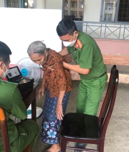 Công an xã hỗ trợ người dân đến lăn tay để làm CCCD