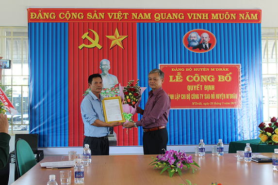 và tặng lẵng hoa chúc mừng chi bộ Công ty sao đỏ M’Đrắk