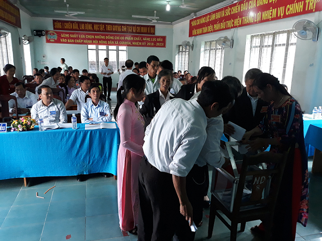 Đại biểu nông dân Cư Króa tiến hành bỏ phiếu bầu Ban chấp hành khóa mới, nhiệm kỳ 2018-2023