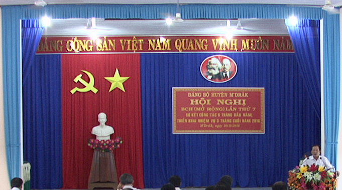 Ngày 20/10/2016, Đảng bộ huyện M’Drắk đã tổ chức Hội nghị Ban chấp hành mở rộng lần thứ 7 sơ kết công tác 9 tháng đầu năm và triển triển khai nhiệm vụ 3 tháng cuối năm 2016. Đồng chí Đinh Khắc Tuấn, Tỉnh uỷ viên, Bí thư Huyện ủy chủ trì hội nghị.