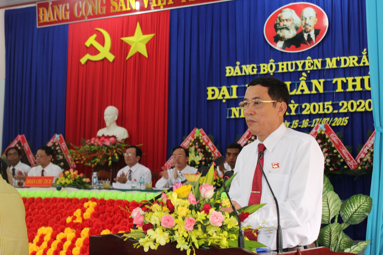 Phát biểu chỉ đạo tại Đại hội, đồng chí Phó Bí thư Tỉnh ủy Phạm Minh Tấn đánh giá cao và biểu dương những cố gắng, nỗ lực của Đảng bộ và nhân dân các dân tộc huyện M’Drắk trong việc thực hiện các chỉ tiêu, nhiệm vụ nhiệm kỳ 2010-2015. Đồng thời cũng nêu ra một số hạn chế, tồn tại cần lưu ý: Tốc độ phát triển kinh tế tăng đều nhưng chưa cao, chuyển dịch cơ cấu còn chậm, giảm nghèo chưa bền vững... Đồng chí đề nghị đại hội phát huy dân chủ, tập trung trí tuệ, nhìn thẳng vào sự thật, tìm ra nguyên nhân chủ quan, khách quan, từ đó tìm ra giải pháp và phương hướng khắc phục. Đặc biệt là thảo luận và tìm giải pháp phù hợp để phát huy tốt tiềm năng, thế mạnh của địa phương, nhất là tiềm năng phát triển lâm nghiệp, chăn nuôi, chế biến nông – lâm sản… để đưa kinh tế - xã hội của huyện phát triển nhanh và bền vững.