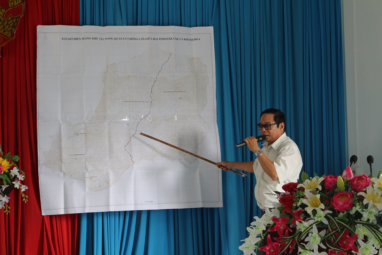 Ngày 21/10/2016, tại Hội trường HĐND-UBND huyện, Đoàn công tác liên ngành của UBND tỉnh Đắk Lắk đã tổ chức cuộc họp tham gia góp ý vào nội dung băng ghi hình chuyến khảo sát khu vực tranh chấp địa giới hành chính giữa tỉnh Đắk Lắk và Khánh Hoà. Tham dự cuộc họp có Ông Võ Văn Cảnh - Phó Chủ tịch UBND tỉnh Đắk Lắk, Trưởng đoàn; các thành viên của đoàn liên ngành theo Quyết định của UBND tỉnh; đại diện Thường trực Huyện uỷ, HĐND, UBMTTQVN huyện; Chủ tịch, các Phó Chủ tịch UBND huyện; đại diện lãnh đạo các Ban xây dựng Đảng, Văn phòng Huyện uỷ; các Ban HĐND huyện; đại diện các phòng, ban ngành liên quan của huyện; đại diện Thường trực Đảng uỷ, HĐND, Chủ tịch, các Phó Chủ tịch và các ngành liên quan của xã.