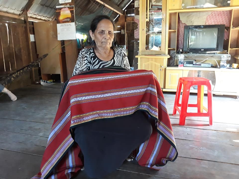 Mí Zon, buôn M’Trưng, xã K rông Jing đang dệt thổ cẩm