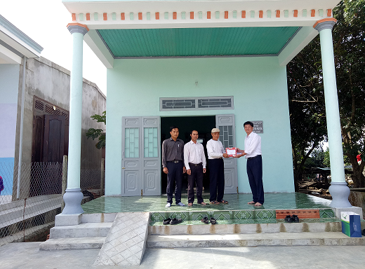 Ông Nguyễn Đức Thị, thôn 7, xã Cư Prao, huyện M'Đrắk trong ngày vui trao nhà tình nghĩa