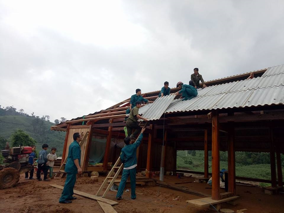 Lực lượng vũ trang huyện M’Drắk giúp nhân dân Thôn 9, xã Cư Króa khắc phục thiệt hại sau mưa bão