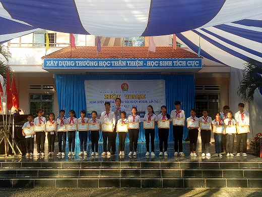 Các em đội viên được trao chứng nhận Chỉ huy Đội giỏi năm học 2017-2018