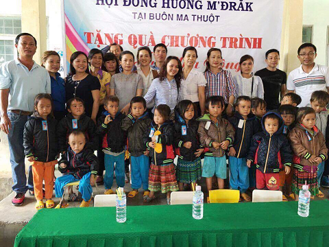 Hội đồng hương M'Drắk (thành phố Buôn Ma Thuột) trao quà cho các em học sinh có hoàn cảnh khó khăn trong chương trình "Áo ấm mùa đông" tại xã Krông Jing và xã Cư San, huyện M'Drắk
