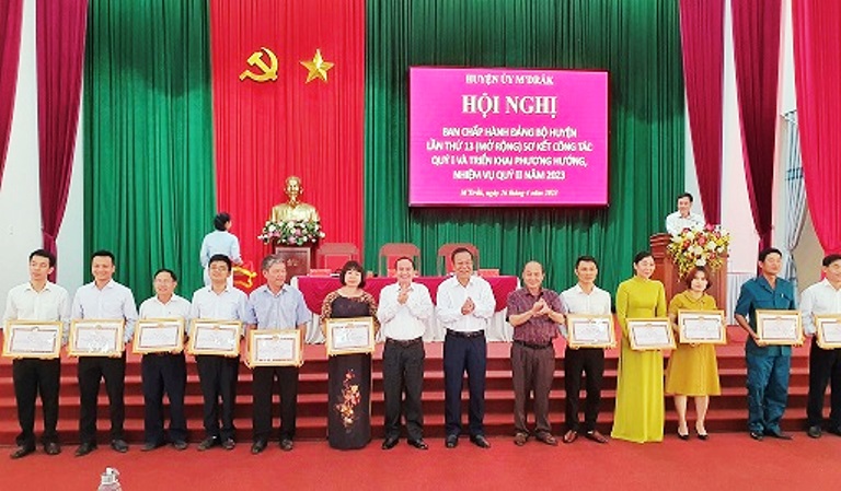 Ngày 26/4/2023, Ban Chấp hành Đảng bộ huyện M’Drắk đã tổ chức Hội nghị (mở rộng) lần thứ 13 nhằm sơ kết tình hình thực hiện nhiệm vụ chính trị quý I, triển khai phương hướng, nhiệm vụ quý II năm 2023.Dự hội nghị có các đồng chí Ủy viên Ban Chấp hành đảng bộ huyện khóa XI, Lãnh đạo các cơ quan tham mưu giúp việc Huyện ủy, Trung tâm Chính trị huyện, lãnh đạo các ban, ngành đoàn thể huyện, Bí thư các tổ chức cơ sở đảng thuộc Huyện ủy; các đồng chí: Ran Lan Von Ga - TUV, Bí thư Huyện ủy, Nguyễn Ngọc Bình- Phó Bí thư thường trực Huyện uỷ, Phạm Ngọc Thạch - Phó Bí thư Huyện ủy, Chủ tịch UBND huyện đồng chủ trì hội nghị.