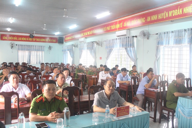 Tham dự Hội nghị tập huấn có đồng chí Phạm Ngọc Thạch – Phó Bí thư huyện ủy, Chủ tịch UBND huyện chủ trì; Đồng chí Đại úy Đoàn Tiến Tài - Phó Đội trưởng Đội 2, Báo cáo viên Phòng Cảnh sát PCCC và CNCH Công an tỉnh Đắk Lắk và 35 đại biểu gồm các đồng chí Chủ tịch Ủy ban nhân dân, Trưởng Công an các xã, thị trấn cùng tham dự buổi tập huấn.