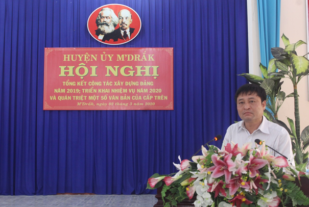 Hội nghị đã thông qua báo cáo kết quả thực hiện nhiệm vụ công tác xây dựng Đảng năm 2019 và nhiệm vụ trọng tâm năm 2020. Theo đó, trong năm 2019 Ban Thường vụ Huyện ủy M’Drắk đã kịp thời, chủ động cụ thể hóa, xây dựng và triển khai các kế hoạch tổ chức học tập, quán triệt các văn bản của các cấp; công tác tuyên truyền đã bám sát định hướng, gắn với tuyên truyền các ngày lễ, kỷ niệm của đất nước, của địa phương; kế hoạch đào tạo, bồi dưỡng lý luận chính trị, nghiệp vụ cho đội ngũ cán bộ bảo đảm theo kế hoạch; công tác xây dựng Đảng được củng cố, kiện toàn; chương trình kiểm tra, giám sát được thực hiện nghiêm túc… Qua đánh giá chất lượng tổ chức cơ sở đảng (TCCSĐ) năm 2019, có 6 đơn vị hoàn thành xuất sắc nhiệm vụ, 26 đơn vị hoàn thành tốt nhiệm vụ; 3.114 đảng viên được đánh giá chất lượng, trong đó có 360 đảng viên hoàn thành xuất sắc nhiệm vụ, 2.441 đảng viên hoàn thành tốt nhiệm vụ. Kết nạp 156 đảng viên mới (đạt 97,5% kế hoạch); chuyển đảng chính thức cho 189 đảng viên dự bị bảo đảm quy định; thẩm tra, xác minh, kết luận tiêu chuẩn chính trị đối với 610 cán bộ theo Quy định 126-QĐ/TW, ngày 28/2/2018 của Bộ Chính trị.
