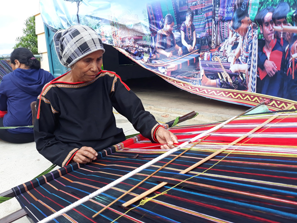 Phần thi dệt thổ cẩm giữa các nghệ nhân.