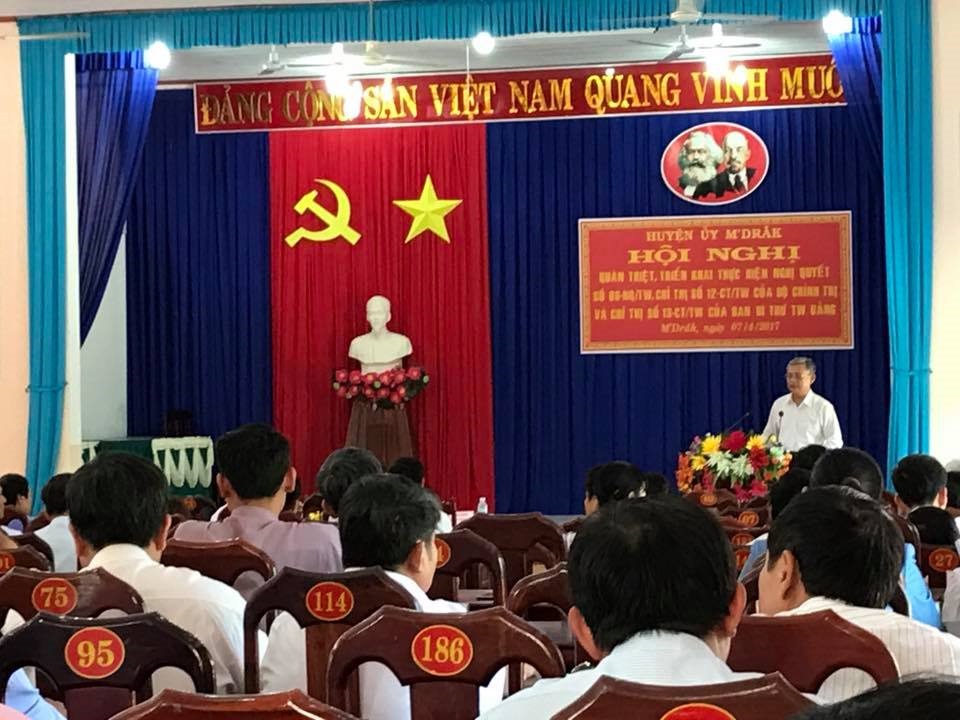 Huyện M'Drắk tổ chức Hội nghị phổ biến, quán triệt Nghị quyết, các Chỉ thị của Bộ Chính trị và Ban Bí thư Trung ương Đảng