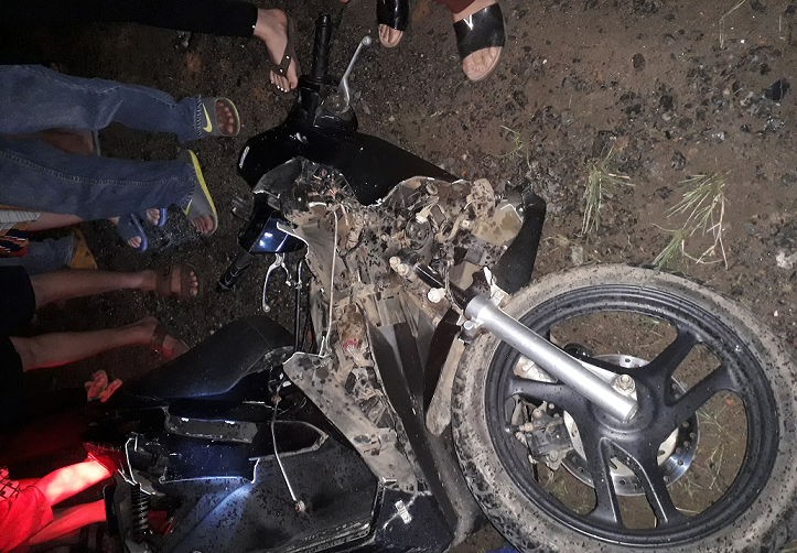 Phần đầu và sườn xe mô tô bị hư hỏng nặng