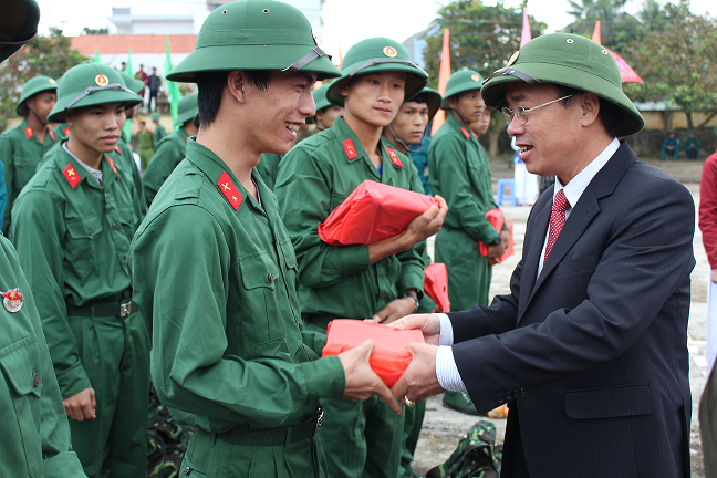 Lãnh đạo huyện tặng quà tân binh lên đường nhập ngũ năm 2017