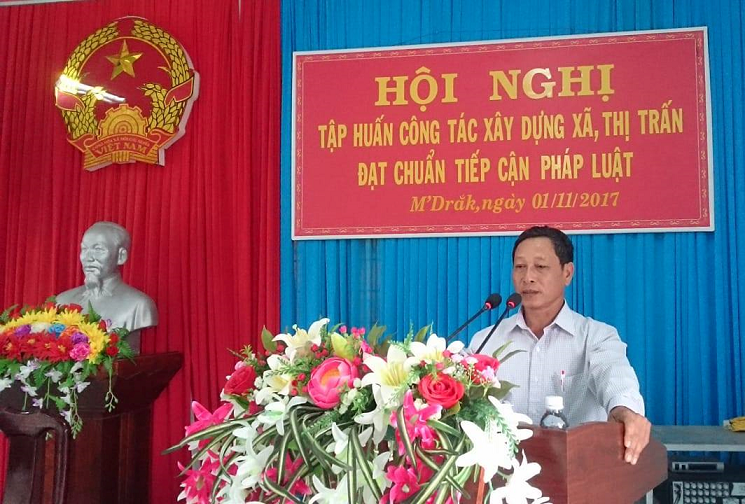 Chiều ngày 01/11/2017, Ủy ban nhân dân huyện M’Drắk đã tổ chức Hội nghị tập huấn công tác xây dựng xã, phường, thị trấn đạt chuẩn tiếp cận pháp luật. Tham dự hội nghị có trên 100 học viên là cán bộ lãnh đạo các cơ quan: Công an huyện, Ban Dân vận Huyện ủy, Ban Tuyên giáo Huyện ủy, UBMTTQVN huyện, Phòng Tài chính - Kế hoạch, Phòng Nông nghiệp và Phát triển nông thôn, Đài Truyền thanh - Truyền hình huyện; Chủ tịch UBND, công chức Tư pháp - Hộ tịch, Văn phòng - Thống kê, Văn hóa - Xã hội, Địa chính - Xây dựng, Kế toán và Trưởng Công an các xã, thị trấn.