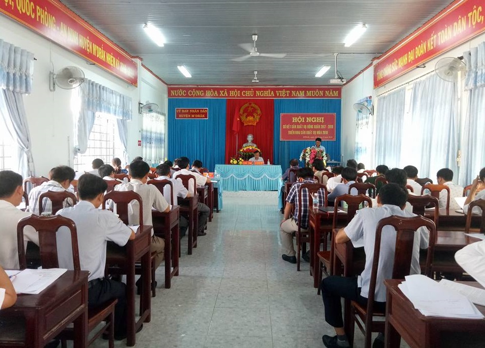 Sáng ngày 22/5/2018, UBND huyện M’Drắk đã tổ chức Hội nghị sơ kết vụ Đông Xuân 2017-2018, triển khai sản xuất vụ Mùa 2018. Đến dự có các đồng chí Ngô Nhân, Giám đốc Trung tâm Khuyến nông tỉnh; Vũ Thị Thanh Bình, Phó chi cục trưởng Chi cục Bảo vệ thực vật tỉnh; Nguyễn Ngọc Bình, Chủ tịch HĐND huyện; lãnh đạo các phòng ban, cơ quan, đơn vị trên địa bàn huyện. Đồng chí Hòa Quang Khiêm, Chủ tịch UBND huyện chủ trì hội nghị.