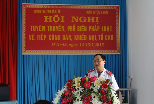 Sáng ngày 12/7/2016, UBND huyện M’Drắk đã phối hợp với Thanh tra tỉnh Đắk Lắk tổ chức Hội nghị phổ biến, giáo dục pháp luật về tiếp công dân, khiếu nại, tố cáo cho cán bộ, công chức và nhân dân trên địa bàn huyện.Tham dự khai mạc có lãnh đạo Thanh tra tỉnh; đồng chí Hòa Quang Khiêm - Phó Bí thư, Chủ tịch UBND huyện; Trưởng (hoặc Phó), cán bộ làm công tác tiếp công dân, xử lý đơn thư, tham mưu giải quyết khiếu nại, tố cáo của các phòng, ban ngành của huyện; Ban Tiếp công dân huyện; Chủ tịch (hoặc Phó Chủ tịch) UBND, UBMTTQVN huyện, Hội nông dân, cán bộ làm công tác tiếp công dân, xử lý đơn thư, tham mưu giải quyết khiếu nại, tố cáo của các xã, thị trấn; Tổ trưởng (hoặc Tổ phó) các Tổ dân phố, trưởng (hoặc Phó) Ban tự quản thôn, buôn, già làng (hoặc người có uy tín) trong khu dân cư.