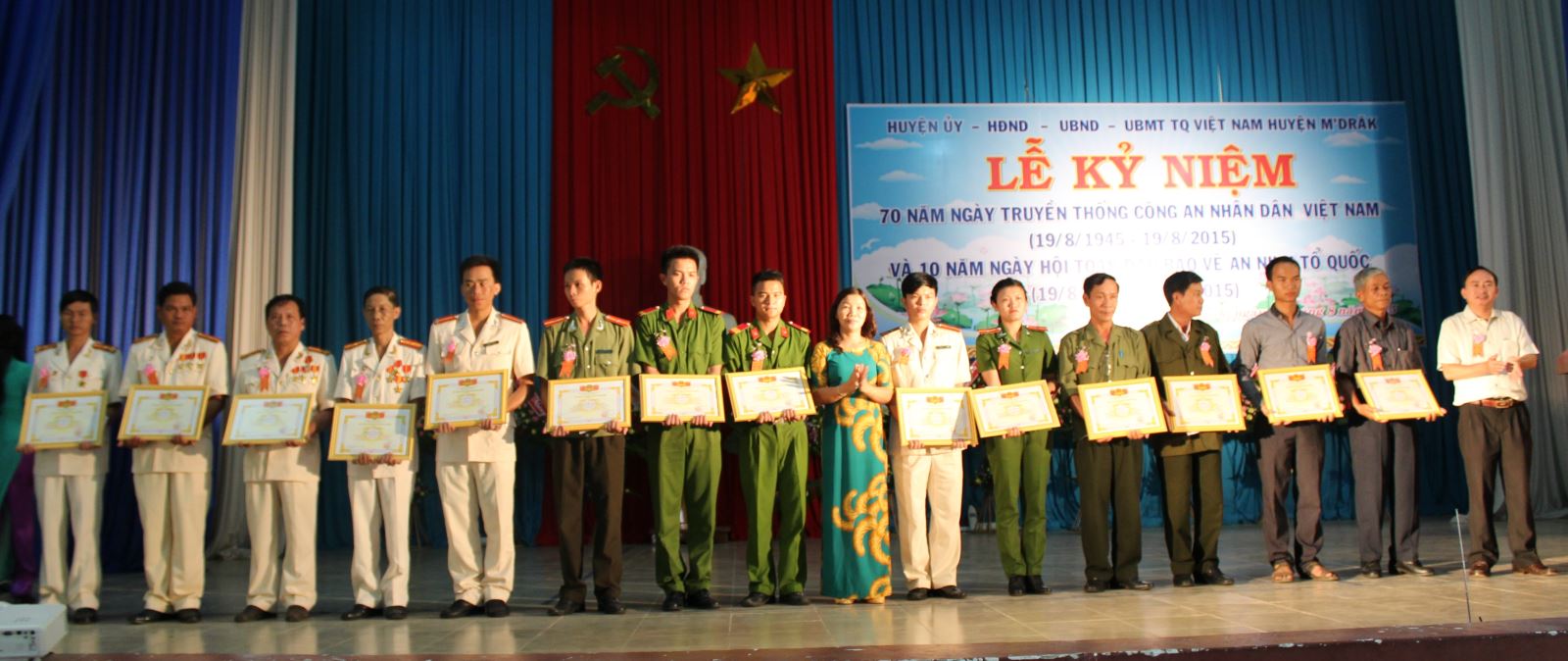 HUYỆN M’DRẮK TỔ CHỨC KỶ NIỆM 70 NĂM NGÀY TRUYỀN THỐNG LỰC LƯỢNG CÔNG AN NHÂN DÂN VIỆT NAM (19/8/1945-19/8/2015) VÀ 10 NĂM NGÀY HỘI TOÀN DÂN BẢO VỆ AN NINH TỔ QUỐC (19/8/2005-19/8/2015)