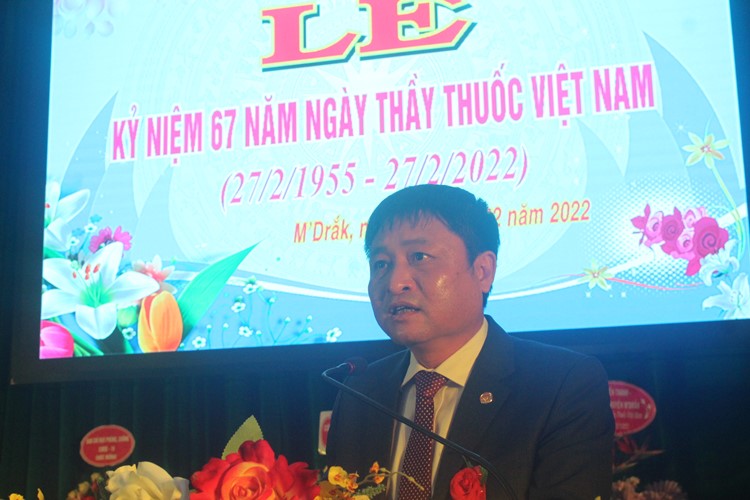 Sáng ngày 27/02/2022, tại Hội trường Huyện M’Drắk, UBND huyện đã tổ chức trang trọng Lễ kỷ niệm 67 năm Ngày thầy thuốc Việt Nam (27/2/1955 – 27/2/2022). Đến dự có các đồng chí Hồ Duy Thành - Tỉnh ủy viên, Bí thư Huyện ủy, Chủ tịch HĐND huyện; Phạm Ngọc Thạch – Phó Bí thư Huyện ủy Huyện ủy, Chủ tịch UBND huyện, chủ trì; Y Khoan Niê Kđăm - UVBTV Huyện ủy, Trưởng ban Dân vận, Chủ tịch UBMTTQVN huyện; đại diện lãnh đạo Huyện ủy, HĐND, UBND huyện; Thành viên Ban Chỉ đạo công tác phòng, chống COVID-19 trên địa bàn huyện; UBND các xã, thị trấn và cán bộ, công nhân viên chức ngành y tế của huyện.Đ/c Phạm Ngọc Thạch – Phó Bí thư Huyện ủy, Chủ tịch UBND huyện