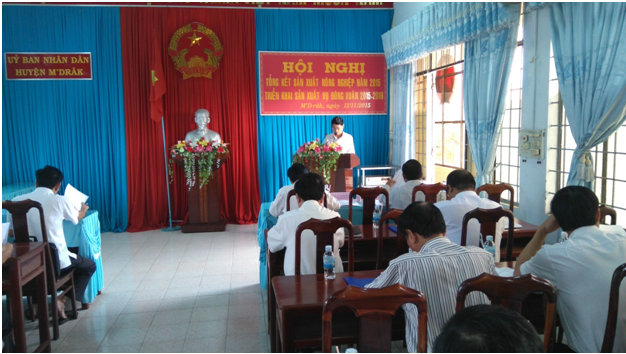 Ngày 12 /11/2015, UBND huyện M’Drắk tổ chức Hội nghị tổng kết đánh giá tình hình sản xuất nông nghiệp năm 2015 và triển khai nhiệm vụ sản xuất Đông Xuân 2015-2016. Tham dự Hội nghị có đồng chí Vũ Hữu Nhân - Phó Bí thư Thường trực Huyện ủy, đồng chí Ngô Lương Vĩnh - Phó Chủ tịch HĐND huyện, các đồng chí Phó Chủ tịch UBND huyện; đại diện lãnh đạo các phòng, ban, ngành, đoàn thể của huyện và UBND các xã, thị trấn; đồng chí Hòa Quang Khiêm - Chủ tịch UBND huyện, chủ trì hội nghị.