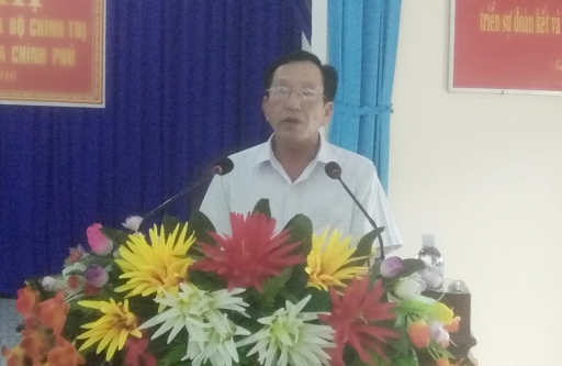 Đ/c Trần Quang Vinh, Chủ tịch Hội Liên lạc với người Việt Nam ở nước ngoài tỉnh truyền đạt Chỉ thị 45-CT/TW của Chính phủ