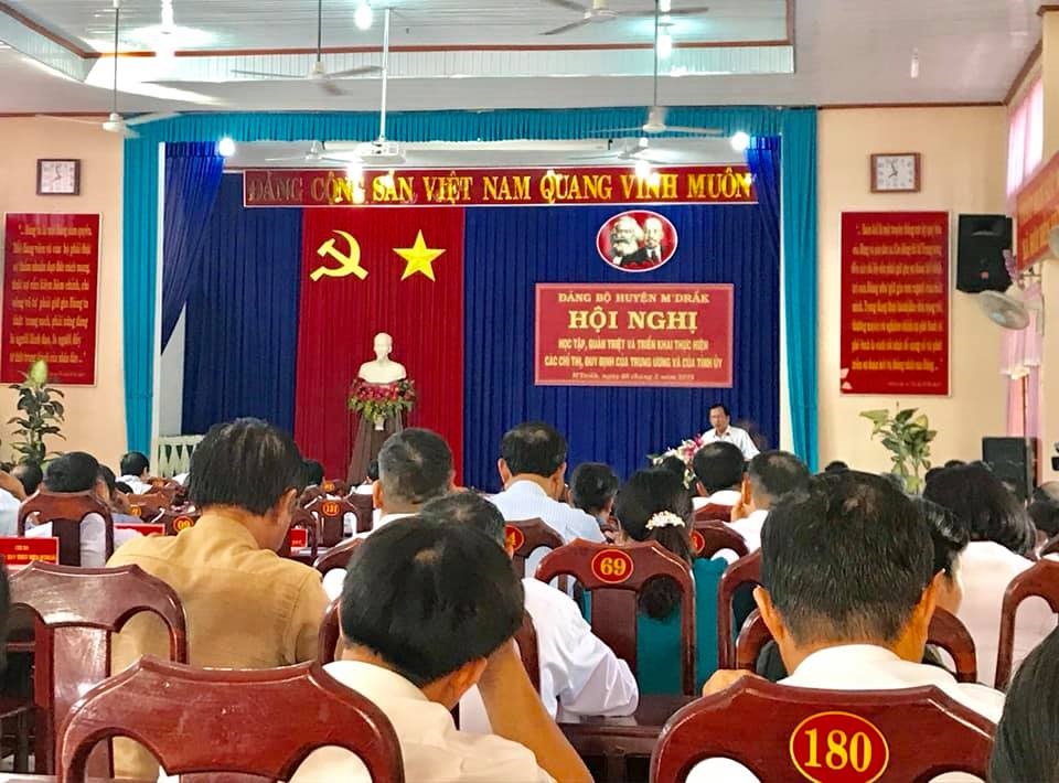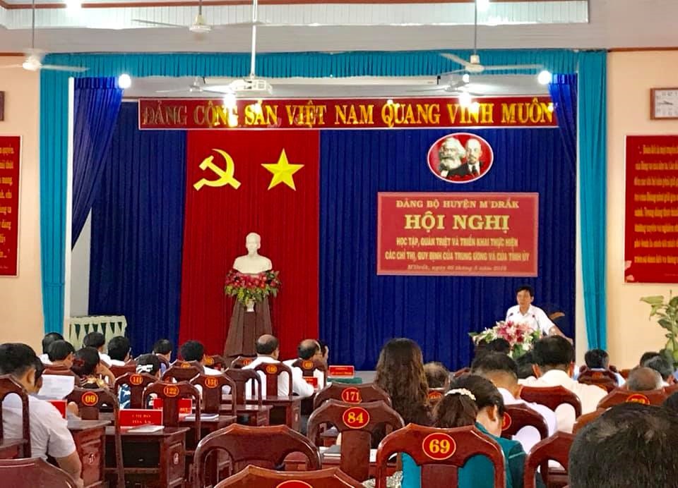 Ngày 08 tháng 05 năm 2019, tại Trung tâm bồi dưỡng chính trị huyện, Huyện uỷ M'Drắk tổ chức Hội nghị học tập, quán triệt, tuyên truyền và triển khai thực hiện các văn bản của Ban Bí thư, Bộ Chính trị và của Tỉnh uỷ cho các cán bộ chủ chốt của huyện..jpg)