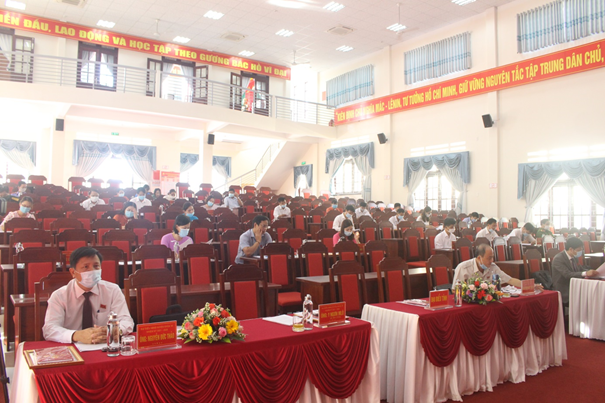 Các đại biểu về tham dự kỳ họp thứ nhất HĐND huyện khóa XII, nhiệm kỳ 2021-2026