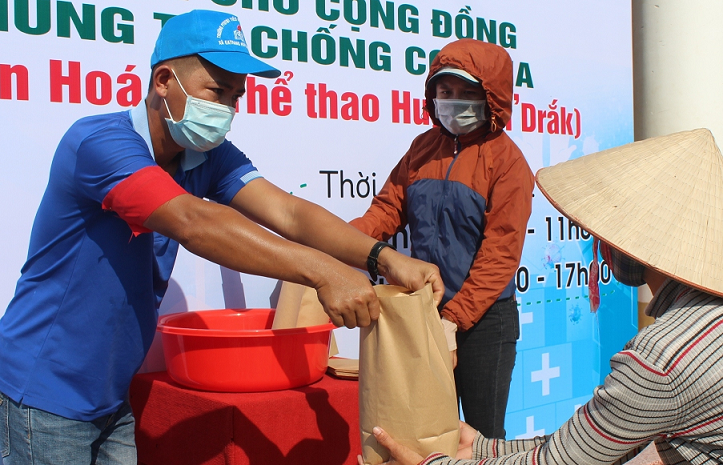 Huyện Đoàn M'Drắk phối hợp phát gạo miễn phí cho người nghèo bị ảnh hưởng bởi dịch bệnh Covid-19.