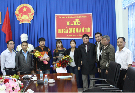 Lãnh đạo UBND huyện M'Drắk trao giấy chứng nhận kết hôn