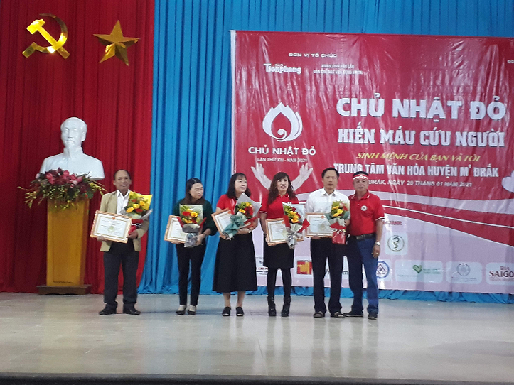 Tại ngày hội, Ban chỉ đạo vận động hiến máu tình nguyện tỉnh Đắk Lắk cũng đã khen thưởng cho 3 tập thể và 5 cá nhân có thành tích xuất sắc trong công tác tổ chức vận động hiến máu tình nguyện “Chủ nhật Đỏ” năm 2021.