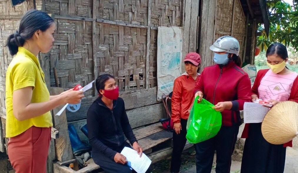Hội LHPN xã Krông Jing tuyên truyền về phòng chống dịch COVID-19 và phát khẩu trang miễn phí cho người dân tại nhà