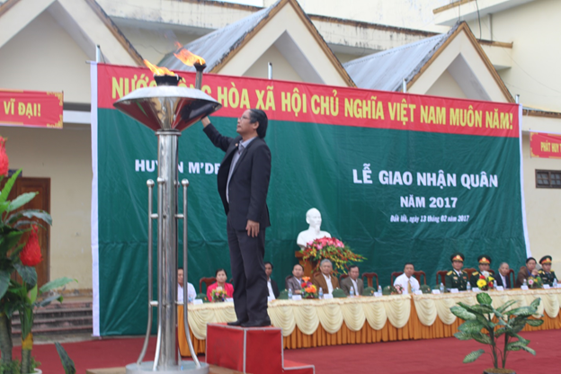 Đồng chí: Đinh Khắc Tuấn – Bí thư Huyện ủy thắp đuốc lễ giao nhận quân