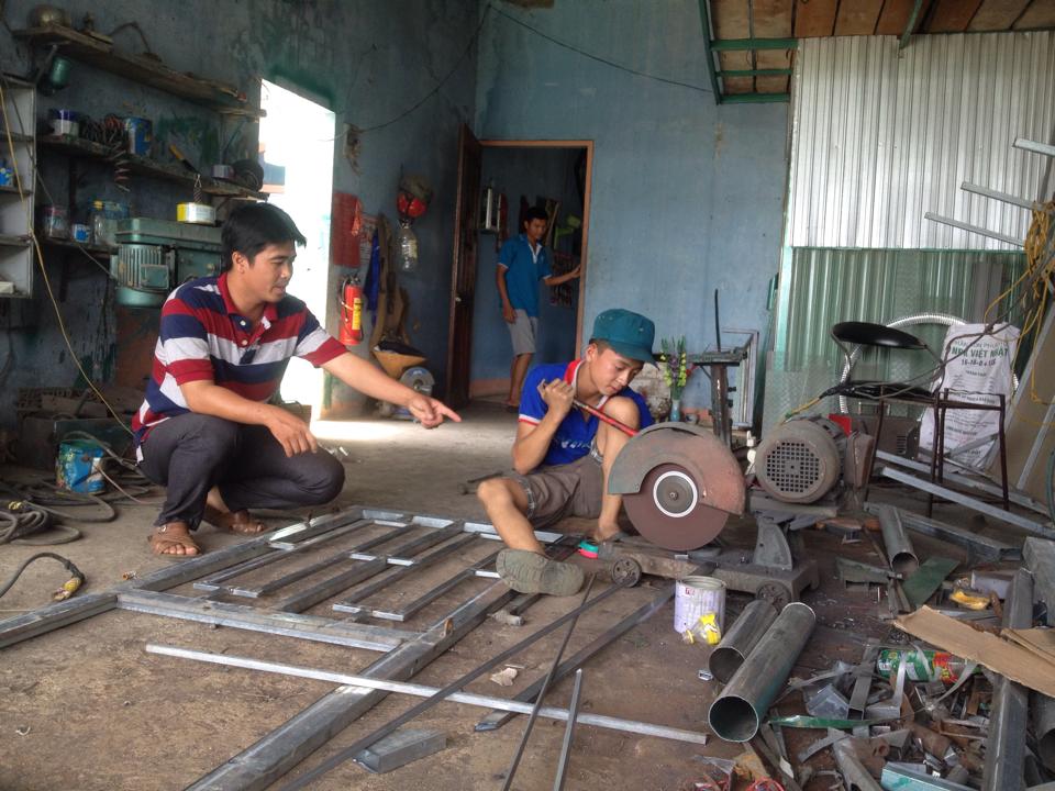 Anh Châu Bửu Hưởng đang dạy nghề cho lao động tại cơ sở