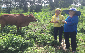 Hội viên hội LHPN xã Cư Prao, huyện M'Drắk được tặng bò sinh sản trong hoạt động trao tặng bò sinh sản vì phụ nữ nghèo