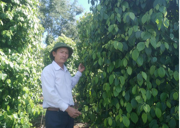 Mô hình cà phê xen canh hồ tiêu của CCB Phạm Văn Hưởng, xã Ea Riêng