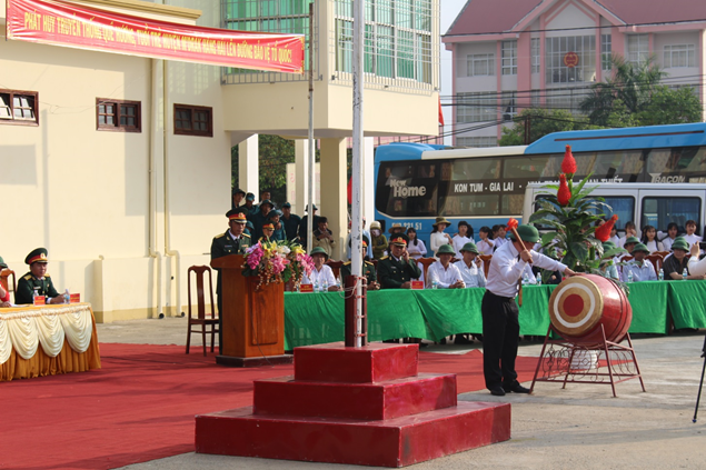 Đồng chí: Hòa Quang Khiêm – Chủ tịch UBND huyện đánh trống giao quân