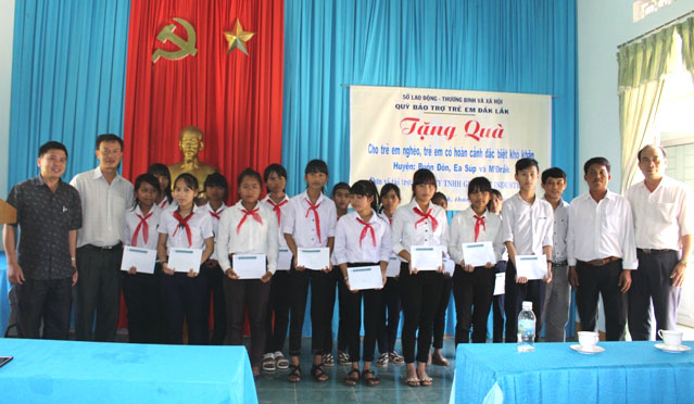 Vừa qua, Hội bảo trợ trẻ em tỉnh Đắk Lắk phối hợp với Uỷ ban nhân dân huyện M’Drắk, Công ty Grobest Industrial trao tặng 45 suất học bổng cho học sinh nghèo vượt khó huyện M’Drắk.