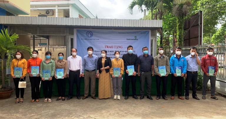 Sáng ngày 4/3/2022, Bảo hiểm Xã hội huyện M'Drắk phối hợp với Ngân hàng Thương mại cổ phần Ngoại thương Việt Nam (Vietcombank) tổ chức trao tặng sổ Bảo hiểm xã hội, thẻ Bảo hiểm y tế cho 10 người có hoàn cảnh khó khăn thuộc 3 xã Ea Trang, Krông Jing và xã Krông Á - huyện M'Drắk..jpg)