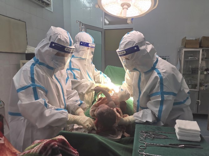 Các y bác sỹ Trung tâm Y tế Huyện M'Drắk mổ lấy thai thành công cho bệnh nhân mắc Covid-19