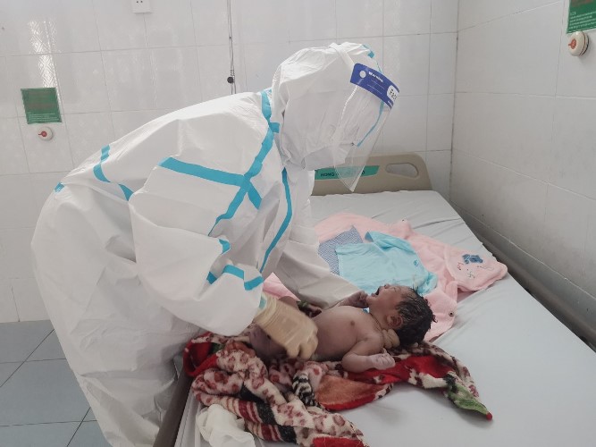 Bác sĩ chuyên khoa I Ngô Quang Vinh - Trưởng Khoa Chăm sóc sức khỏe sinh sản cho biết: Sau phẫu thuật lấy thai thành công, mẹ con sản phụ được chuyển vào phòng điều trị riêng dành cho bệnh nhân mắc Covid-19 thuộc Khu hồi sức sau phẫu thuật để tiếp tục điều trị. Em bé tách mẹ hoàn toàn, được nuôi ăn bằng sữa công thức với sự theo dõi chăm sóc đặc biệt của bác sỹ và điều dưỡng. Hiện sức khỏe của bệnh nhân và trẻ sơ sinh đều ổn định.