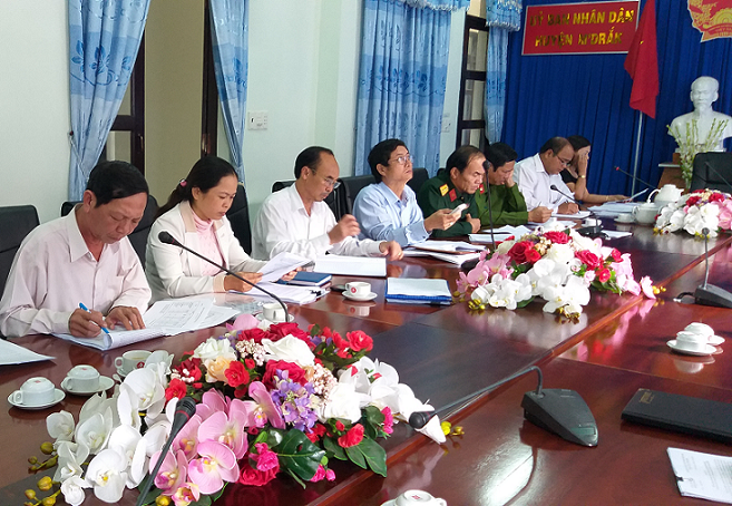 Đồng chí Hòa Quang Khiêm - Chủ tịch UBND huyện chủ trì cuộc họp.