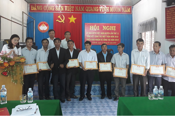 Tặng giấy khen cho các tập thể, cá nhân có thành tích xuất sắc trong công tác mặt trận năm 2018