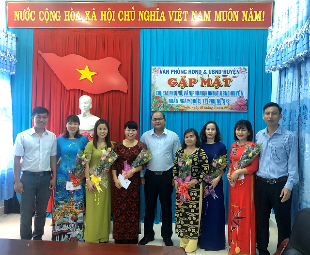 Tại buổi gặp mặt các đồng chí lãnh đạo đã tặng hoa, chúc mừng và động viên các nữ cán bộ, công chức; đồng thời, tin tưởng chị, em phụ nữ Văn phòng HĐND&UBND huyện trong thời gian tới phát huy những thành tích, kết quả đã đạt được để tiếp tục cống hiến, hoàn thành tốt các nhiệm vụ của Đảng, Nhà nước giao.